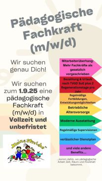 pädagogische Fachkraft (m/w/d) in Vollzeit und unbefristet für unsere Gruppe der Gruppenform II (GFII).